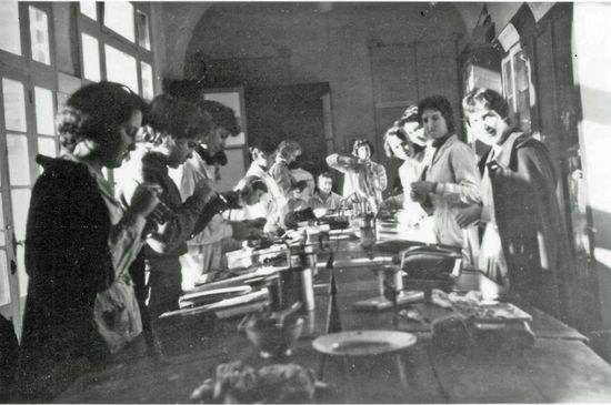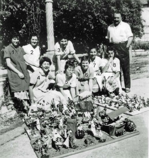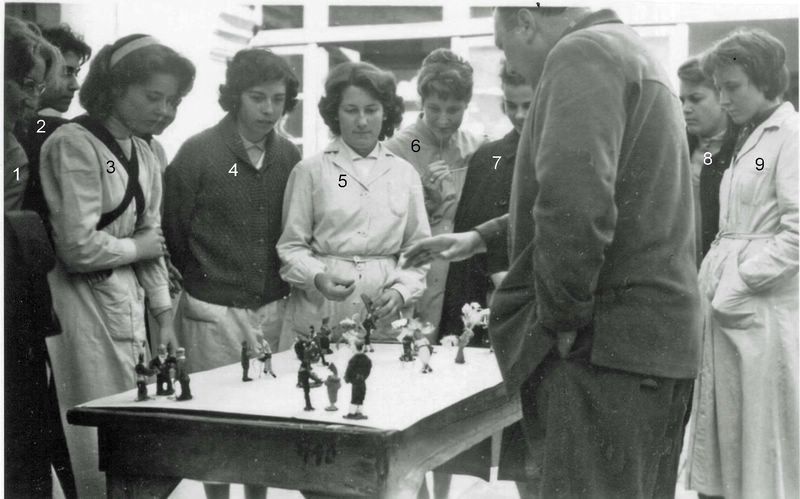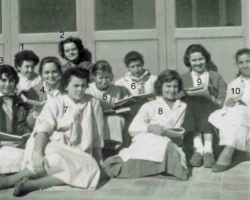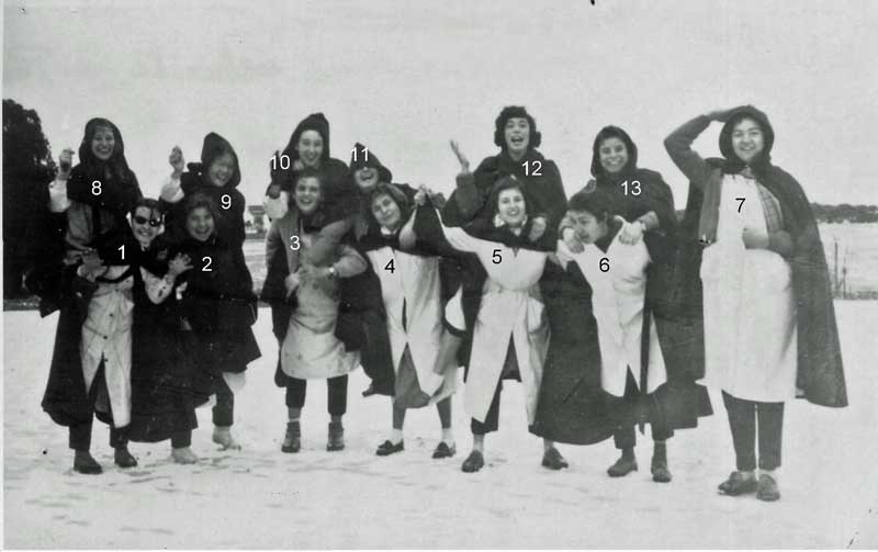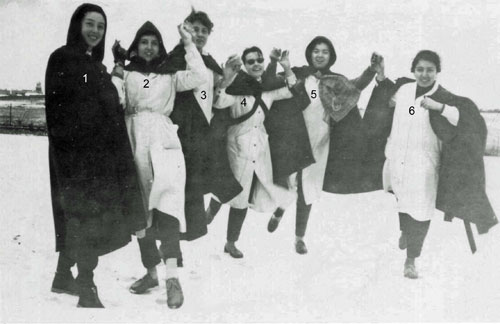 A gauche: Yvette, Lucienne et Françoise A droite: Anne-Marie, Solange, Jeannie, Andrée, Françoise |