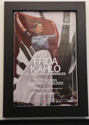 Depuis son inauguration en 1895 le Palais Galliera a connu plusieurs affectations avant dêtre définitivement consacré à la mode en 1977 , par la Mairie de Paris. Lexposition "Frida Kahlo, au- delà des apparences" propose de rentrer dans lintimité de lartiste et de comprendre comment elle sest construite une identité à travers la manière de se présenter et se représenter Pour la 1ère fois lexposition rassemble plus de 200 objets provenant de la Casa Azul, la maison où Frida a grandi. Ses effets personnels ont été mis sous scellés au décès de lartiste en 1954, par son mari Diégo Rivera et ont été découverts 50 ans plus tard .Nous retenons ainsi des corsets et prothèses peints à la main(que je nai pas photographiés...), des tableaux, des photos, des colliers précolombiens quelle collectionnait, des robes traditionnelles tehuana aux broderies chatoyantes. Le parcours de cette exposition retrace la manière dont lartiste a façonné son image au fil du temps et de sa douleur Anne Marie Alazard-Carol Décembre 2022 (Découvrez quelques photos de cette expo en cliquant sur l'image ci-dessous)