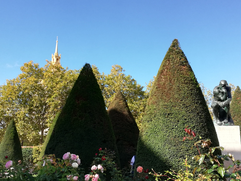 Petite balade dans le 7ème arrondissement de Paris . Nous voici devant lHôtel de Biron, plus connu sous le nom de Musée Rodin. Il est entièrement consacré aux collections dAuguste Rodin et Camille Claudel depuis 1919 ,deux ans après la mort de Rodin. Cest un musée très agréable, que nous parcourons tranquillement dans des salles ensoleillées, tout près des sculptures de bronze ou marbre de ce "géant" - Le baiser, Balzac, ses mains jointes-, et au détour dune salle nous rentrons dans lintimité de Camille Claudel ou nous fondons devant sa "petite châtelaine "ou ses causeuses en onyx...Nous prenons le temps dadmirer Et les jardins nous offrent entre les rosiers et les buis « le Penseur » " les bourgeois de Calais"" la Porte de LEnfer de Dante", " les Trois Ombres" Cest toujours avec le même plaisir que jaccompagne mes invités lors de leur passage à Paris dans ce lieu plein de charme. Anne Marie Alazard (février 2023)