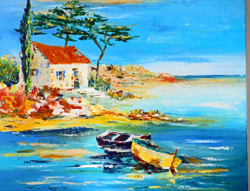 Après Mayotte et Mamoudzou, la Côte dIvoire, et Abidjan,la Guyane et Cayenne, Villeneuve-Loubet suivi de notre installation à Marseille, la boucle sest refermée pour les BOUBON et cest de Caen que je vous adresse ces quelques lignes, à la demande dAnne-Marie, pour accompagner les photos des tableaux présentés la semaine dernière, dans une petite galerie : le Trianon , à Lion-sur-mer, tout près de Ouistreham plus connue lorsquon évoque le Débarquement, Toujours passionnée par la peinture ce nest quen 1999, à Cayenne, que je prendrai mes premiers cours particuliers daquarelle. De retour en France, cest dans un atelier de Saint- Laurent du Var que je découvrirai le « couteau »et le plaisir de travailler à lhuile. Une première exposition à Villeneuve-Loubet puis une participation au Salon des artistes rapatriés dAfrique du Nord à Juan-les Pins mont encouragée à poursuivre, De retour en Normandie, jai poursuivi seule, exposant une fois par an avec dautres retraités de lEnseignement Public, essentiellement au Sépulcre et Eglise Saint-Sauveur deux lieux classés et que la mairie de Caen mettaient à notre disposition, Pour la première fois, la semaine dernière, réservation à trois du Trianon, Cela évoquera pour certaines dentre vous le cinéma que nous avions à Bab-el Oued !!! Voilà, après les bouquets, les coquelicots et pavots, les paysages du Sud, quelques marines, femmes dAsie,,,quelques compositions avec mélange de peinture et papier de soie,,,cette activité apporte du plaisir , Je renouvelle tous mes remerciements à Doudou et Anne-Marie qui maintiennent ce lien entre nous , Amicalement à toutes, affectueusement à certaines avec lesquelles les souvenirs partagés sont plus personnels, Fabienne.En cliquant sur l'image ci-dessous, vous pourrez découvrir quelques aquarelles de ma dernière exposition.