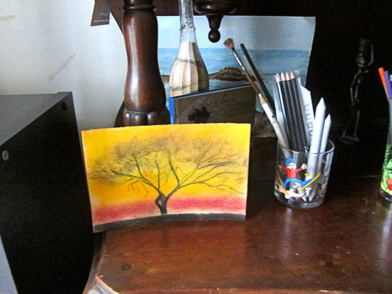 Quand on ne fait pas de la dentelle ... Quand on est nul en aquarelle ... On cherche une activité occasionnelle ... On s'essaie au pastel ... Mais ce n'est pas une bagatelle " |